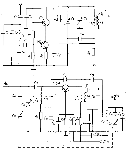 Рисунок 7. Схема транзисторного преобразователя частоты с совмещенным гетеродином диапазона УКВ (прототип УКВ-2-2Е)