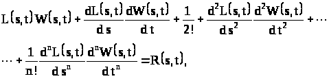 Ограничимся линейной версией системы, когда любое воздействие может быть пересчитано к одному из ее входов. Следовательно, система линейных уравнений n-го порядка, описывающая нестационарное устройство, может быть представлена в виде следующего дифференциального уравнения с нестационарными коэффициентами: