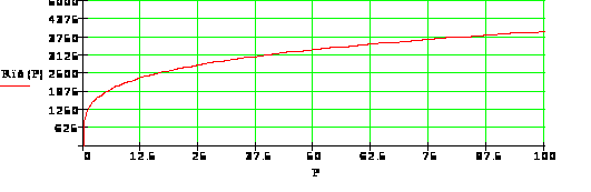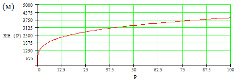 Рисунок 13. График зависимости дальность действия РЛС от отношения мощностей P=Р>РЛС>/Р>ПАП>.