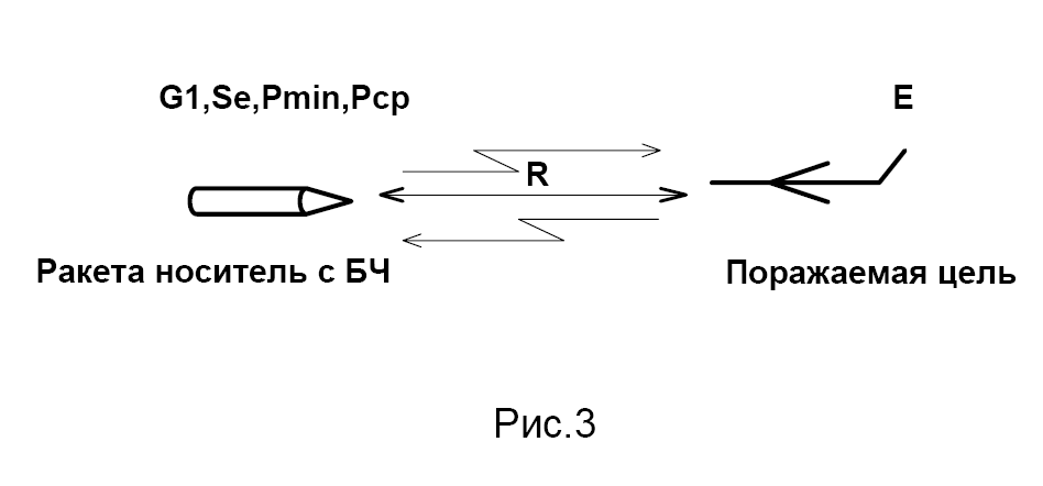 Подрыв боевой части происходит, если ЗУР приблизилась к цели на расстояние необходимое для гарантированного подрыва. Например, зенитно-ракетный комплекс С-300, поражает цель с помощью одной ЗУР с вероятностью 0.9 при попадании ракеты в зону радиусом 100 м от цели. Исходя из этих соображений, необходимо рассчитать порог срабатывания радиовзрывателя, установленного в ГСН. Расчет производиться исходя из основного уравнения радиолокации. Необходимая пороговая мощность на входе приемного устройства ГСН для срабатывания исполнительного устройства равна: