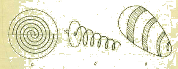 а – плоская с постоянным шагом намотки (архимедова);