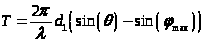 Определение разности фаз между соседними излучателями в плоскости, где осуществляется сканирование, т.е. в Е плоскости: