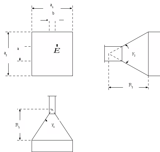 Будем использовать следующую методику расчёта рупорно-линзового излучателя. По заданной рабочей частоте и мощности в антенне выберем возбуждающий волновод. По заданному коэффициенту усиления для одиночного излучателя найдём геометрические размеры рупора, рассчитаем профиль линзы и диаграмму направленности одиночного излучателя.