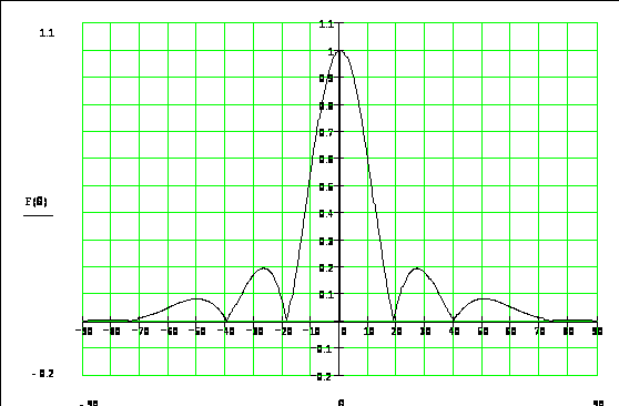 В плоскости Н режим синфазный. Находим расстояние между излучателями, при котором КНД решётки достигает максимального значения, т.е. оптимальное: