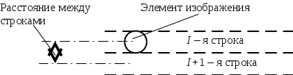 Итак, при построчной развертке изображение передается строка за строкой, начиная, например, с левого верхнего угла изображения и кончая правым нижним. При этом толщина строки равна диаметру элемента изображения.