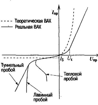 Реальная вольт-амперная характеристика диода имеет прямую и обратную ветви.