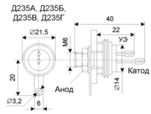 Выводы диодов образуются с помощью Me, образующих омический контакт с полупроводником.