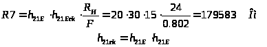 Визначаємо величину опору резистора в колі емітера транзистора за формулою: