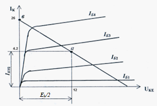Розраховуємо потрібну напругу зміщення для завдання вибраного положення точки спокою: