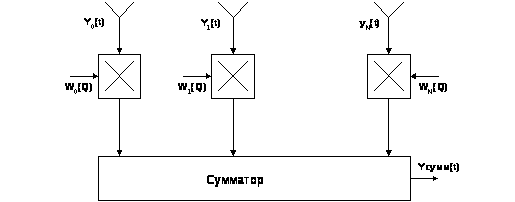 Рис.13 - Схема пространственной обработки для подавления нескольких (N) помех.