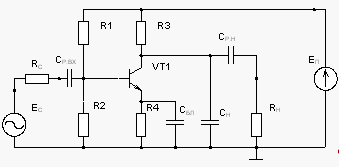 Рис. 1. Усилительный каскад с включением транзистора по схеме с ОЭ