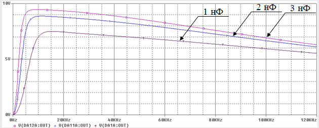Рисунок 5.2 – Влияние С1 = С2 на ФХЧ