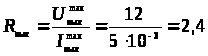 Выходное сопротивление рассчитаем как отношение максимального выходного напряжения к максимальному выходному току: