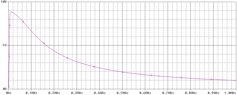 Рисунок 3.2 – АЧХ фильтра (при частоте от 0 до 1 МГц)