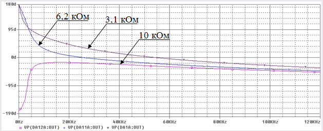 Рисунок 5.6 – Влияние R2 на ФЧХ
