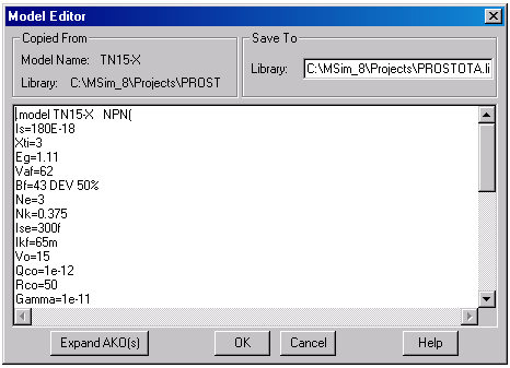 Символы %3 %4 обозначают узлы выхода этого источника и указывают на то, что программа Schematics автоматически пронумерует эти узлы. Далее на место текста %1 %2 @GAIN необходимо записать текст в формате *.cir. В результате строка Template будет выглядеть следующим образом: