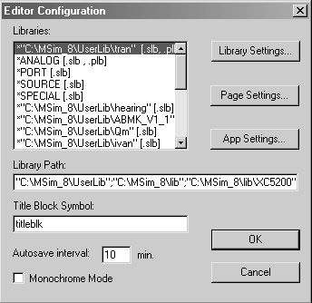В верхней части меню команды Editor Configuration в окне Libraries приведён список подключённых библиотек символов компонентов (с расширением.slb), а в строке Library Path – путь доступа к библиотекам.
