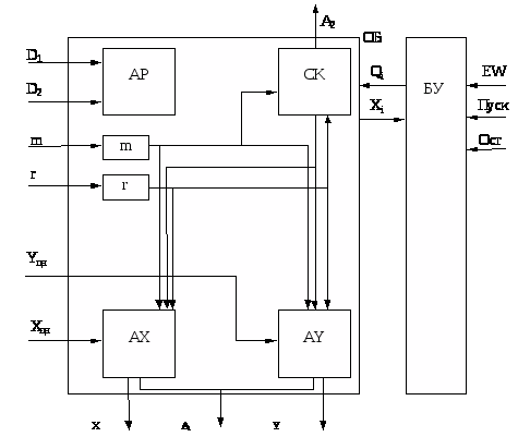 Блоки АР, АХ, AY, СК образуют операционный блок. Структурная схема для такого разделения изображена на рис. 3.