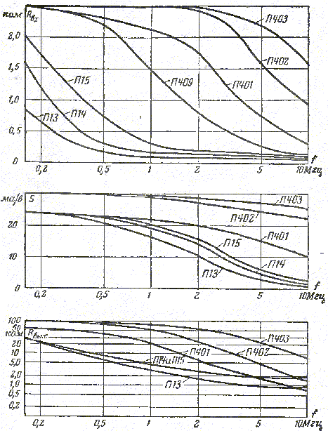 Зависимость крутизны характеристики, внутреннего сопротивления и входного сопротивления от частоты.