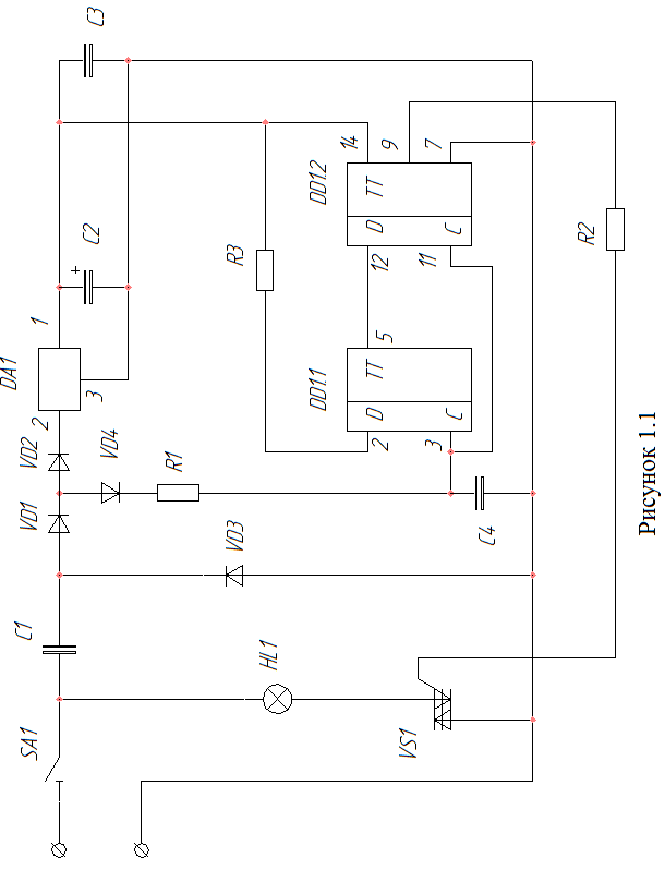 У ній вузол ввімкнення силового симистора VS1 виконаний на одному D-тригері і узгоджуючому транзисторі VT1. Як бачимо, подана схема наближена до розроблюваної. Проте тут наявні свої недоліки: