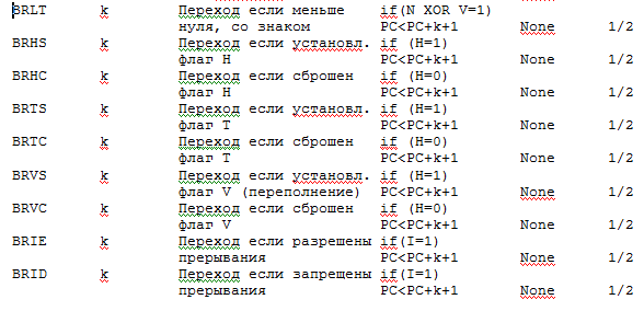 Кроме этого AT90S2313 имеет очень удобную в использовании систему команд, которая приведена ниже.