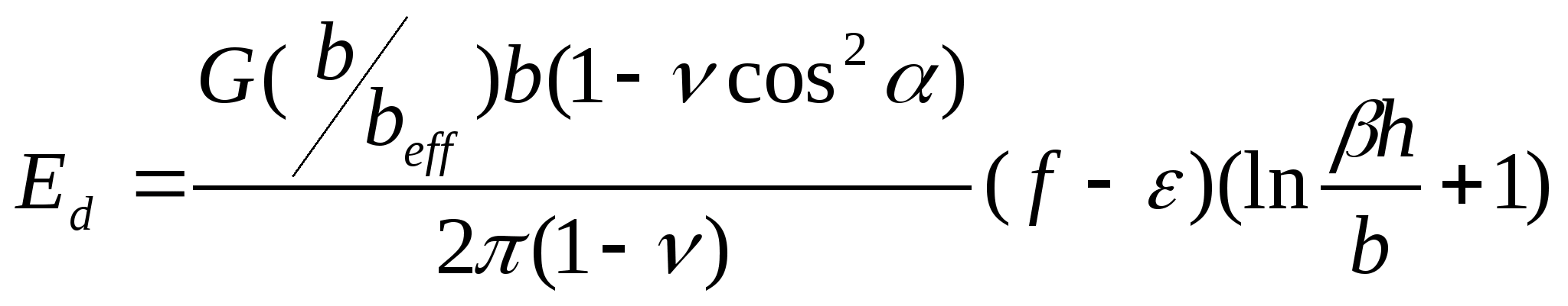 Здесь множитель 2 отвечает двум системам дислокаций несоответствия в каждом направлении <110> вдоль границы раздела, ρ – количество дислокаций на единицу длины в плоскости границы раздела, b – величина вектора Бюргерса дислокации, а α – угол между вектором Бюргерса и линией дислокации. Число β называется параметром ядра дислокации и для системы GeSi по современным данным принимается равным 0,76 (для 60°-ных дислокаций) [7]. Количество дислокаций ρ, участвующих в пластической релаксации пленки, равно