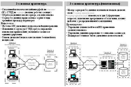 Рис.2. Сравнительные характеристики двух- и трехзвенной архитектуры клиент-сервер.