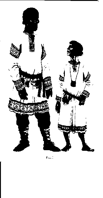 В мужском костюме отличия менее заметны. Они проявлялись, например, в манере ношения верхней одежды, головного убора, завязывания пояса и т. п. Как уже отмечалось, одежда мужчин и женщин была меньше украшена, чем одежда холостой молодежи. Следует указать и на постоянное изменение покроя одежды, материала, цвета, отдельных деталей, насыщенности орнамента и т. д. в одежде замужней женщины и женатого мужчины с возрастом.