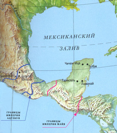 Ацтекское государство к началу испанского завоевания, как уже отмечалось, простиралось широкой полосой от северного Веракруса на побережье Мексиканского залива и территории современного штата Герреро на Тихоокеанском побережье до перешейка Теуантепек, Гватемалы и Юкатана на юге.