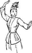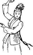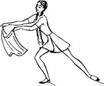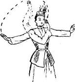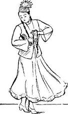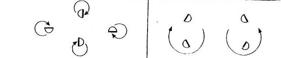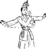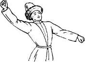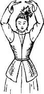 Такты 5—7: тем же ходом кружась вокруг себя, двигаются по ходу часовой стрелки (схема 3). Обе руки поднимают влево—вверх и слегка сгибают в локтях. Голову поворачивают вправо (рис 2).