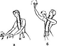 на 4-й — влево-вверх. Голову поворачивают в сторону движения рук, как бы любуясь браслетами (рис 1, а, б).