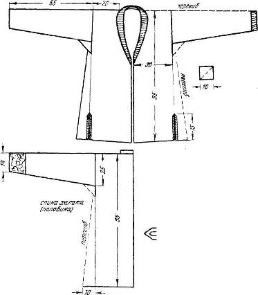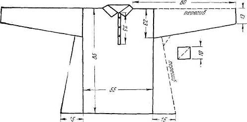 Шапан - старинная верхняя одежда женщин - прямой широкий халат с длинными рукавами. Для теплого времени года его шили легким, а для холодного - с шерстяной подкладкой, простеганной вместе с верхом. Старинные туникообразные халаты имели открытый ворот, а более позднее - отложной воротник.