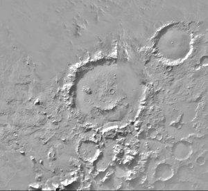 - Топографические измерения выявили заметное понижение поверхности в направлении от южного полюса к северному, которое должно было определять направление переноса воды и осадков, а обширные равнины северного полушария, вероятно, представляют собой дно древнего океана.