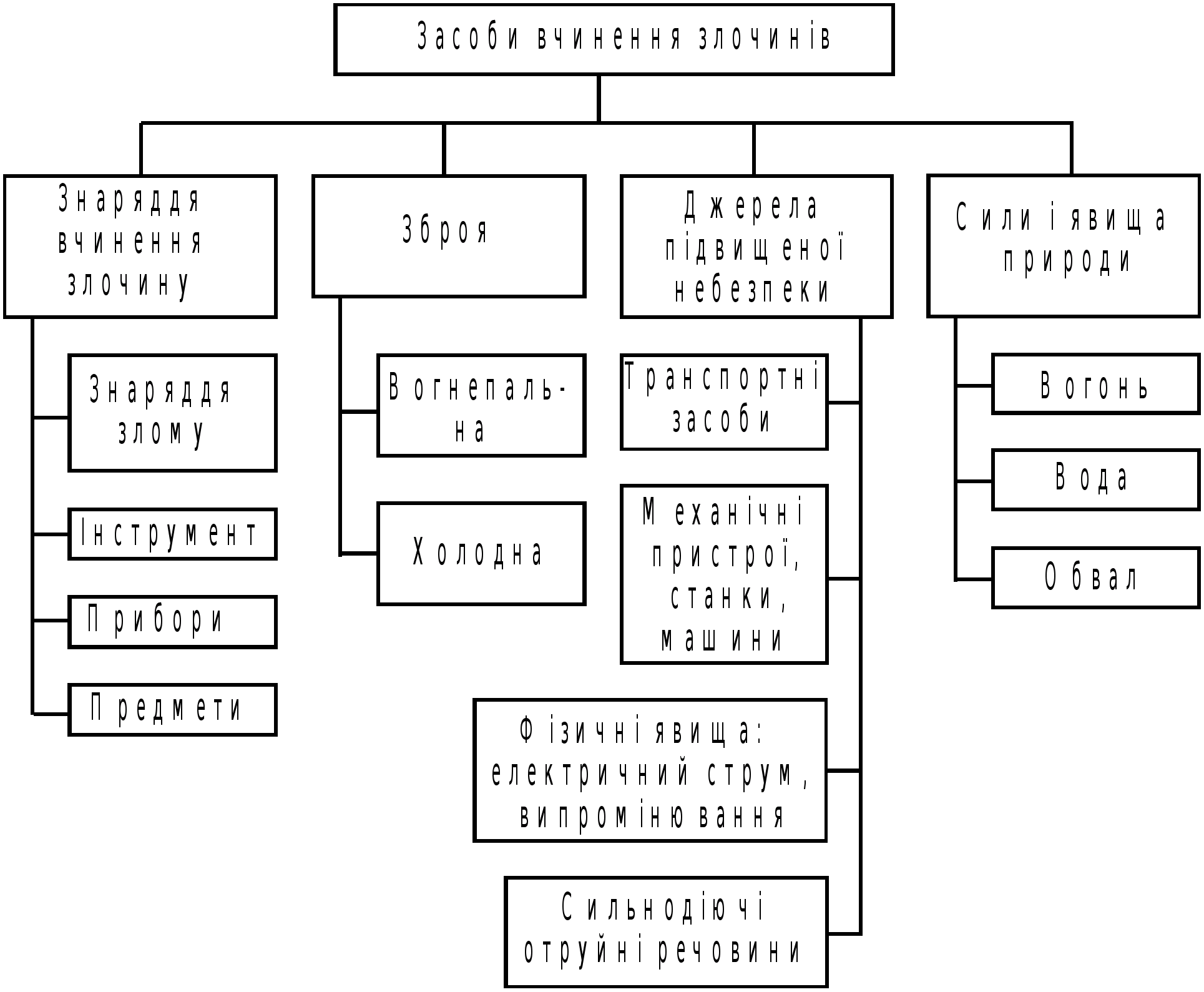 Засоби злочинної діяльності. У соціальній діяльності засоби дістали назву знарядь праці. Це предмети, інструменти, механізми та їхні системи; тварини і живі істоти; речовини природного і синтетичного походження, які суб'єкт вміщує між собою і предметом праці для досягнення поставленої мети.
