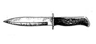 Среди ножей туристических иностранного производства встречаются ряд образцов нескладных ножей. Конструкция этих ножей позволяет их использовать не столько для хозяйственно-бытовых операций, сколько для нанесения колото-резаных ранений человеку пли животному, является колюще-режущим холодным оружием. Наиболее известны ножи" (ножи путешественника), выпускавшиеся в бывшей ГДР, имеющие клинки как у финских, а рукоятки как у охотничьих ножей.
