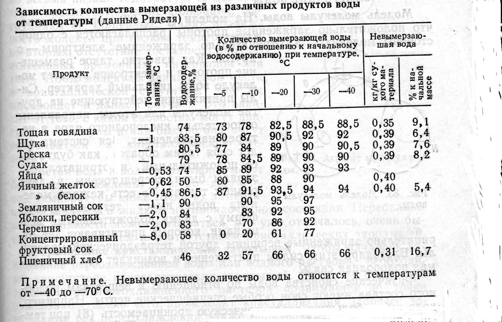 13.Водосодержание, теплоемкость и теплота замерзания некоторых продуктов.