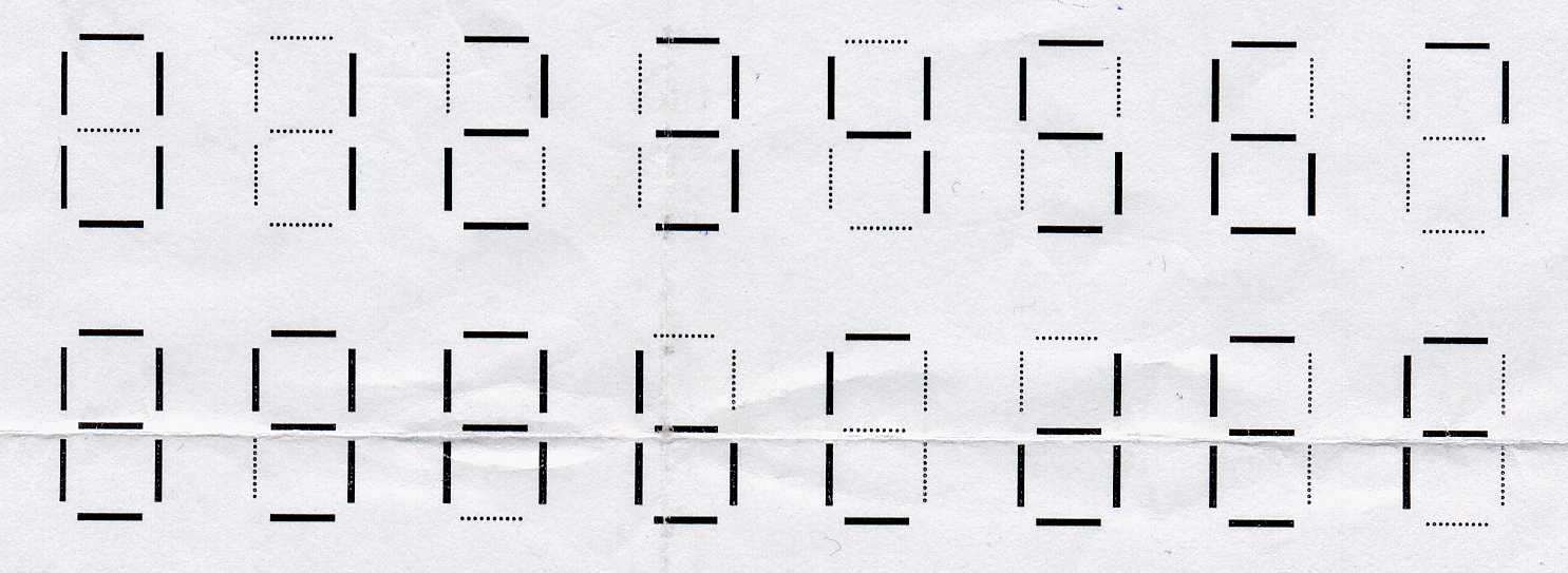 Простейшим из светодиодных индикаторов, выполняющих функции отображения выше названных чисел и некоторых других символов является семисегментный индикатор. Имеется семь элементов, расположенных так, как показано на рис. 2.1.1.
