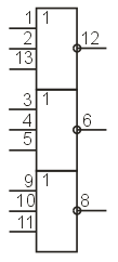 Данная ИМС содержит два пятивходовых элемента ИЛИ-НЕ, в каждом из которых один вход – стробирующий (Е1), и работает в соответствии с таблицей 3.6.1.