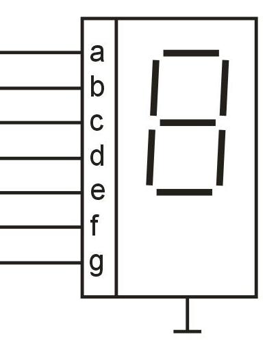 где a, b, c, d, e, f, g – светодиоды индикатора.