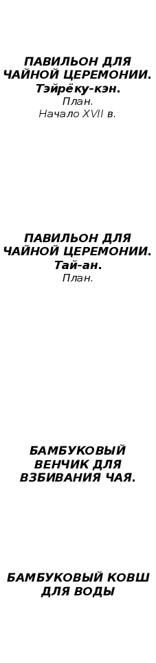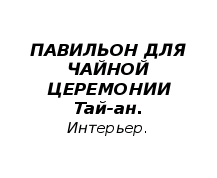 При просторе общей схемы чайной церемонии она представляла собой встречу хозяина и одного или нескольких гостей для совместного чаепития - основное внимание уделялось самой тщательной разработке всех деталей, вплоть до мельчайших, касающихся места действия и его временной организации.