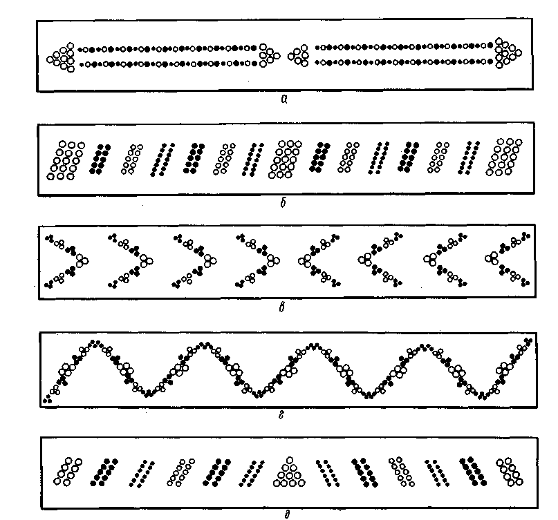 При расстановке стекла в два ряда на конце стола ставят фужеры в виде треугольника по 10—15 шт. вершиной к торцу. Концы стола на расстоянии 15 — 20 см должны быть свободными. Между группами фужеров ставят, чередуя в определенном порядке, рюмки на расстоянии 1,0—1,5 см друг от друга (водочную, лафитную, рейнвейную и т. д.). Ряды рюмок должны быть на одинаковом расстоянии от оси стола (10—15 см), следовательно, между рядами рюмок расстояние должно быть 20—30 см. Чередование рюмок в рядах должно быть симметричным. Ряды рюмок выравнивают.
