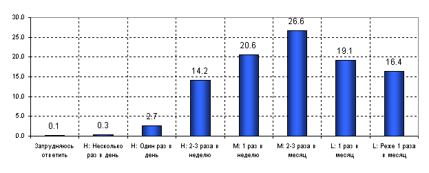 Рисунок 3. Частота потребления пива взрослым городским населением Казахстана