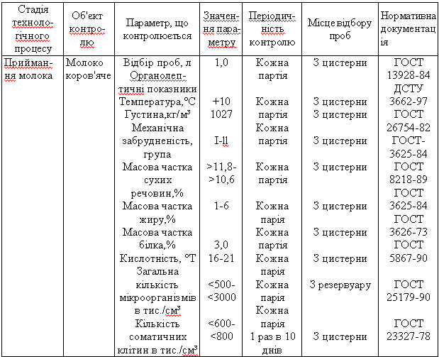 Відбір проб молока і вершків проводити за ГОСТ 13928–84, ГОСТ 26809–86. Дослідження молока повинні проводитись згідно з діючими нормативними документами, затвердженими у встановленому порядку. У цеху приймання повинна бути забезпечена можливість приймання молока по сортах.