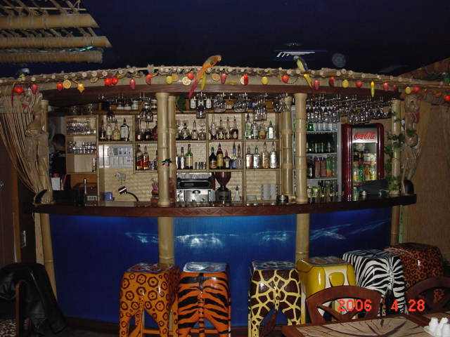 В кафе расположена барная стойка. Барная стойка — это мебельная конструкция, включающая необходимое технологическое, торговое и холодильное оборудование, предназначенное для приготовления, демонстрации, хранения и отпуска продукции бара. Конструкция барной стойки обеспечивает удобство работы бармена и комфорт посетителей бара.