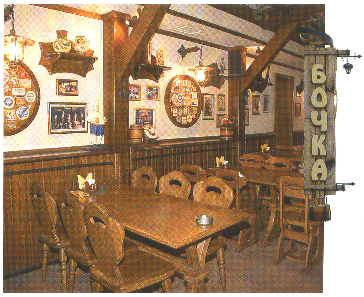 «Бочка» - пивной бар с большим ассортиментом немецкого пива: баварский интерьер и немецкая кухня определяют тему предприятия.