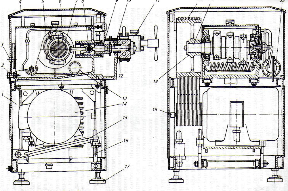 Электродвигатель установлен в станине на поворотной плите, позволяющей регулировать натяжение ремней.