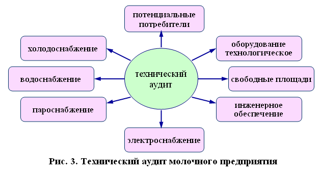 На каждом молочном предприятии есть общие и частные проблемы, связанные с переработкой сыворотки. На первом этапе выяснили, какой вид сыворотки на предприятии, каковы ее объемы. На втором этапе приступили к технологическому аудиту. Выяснили, каково обеспечение площадями, технологическим оборудованием, энергоресурсами (паром) и электрической энергией, водо- и хладоснабжением, инженерное обеспечение (технический персонал), месторасположение предприятия, а также кто является потенциальным потребителем продукции из сыворотки (рис. 3).