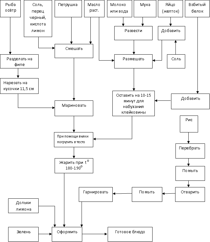 Таблица Б.1 - Технологическая схема на блюдо «Рыба в кляре с гарниром из риса»