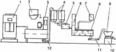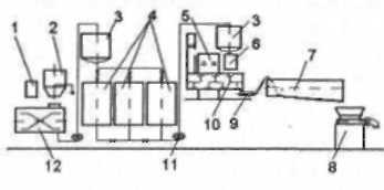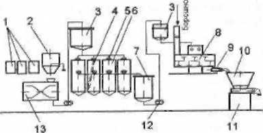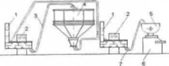Апаратурна схема порційного приготування тіста на концентрованій молочнокислій заквасці з житнього або житньо-пшеничного борошна приведена нарис. 6.23.