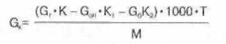 де G, — маса тіста, кг (визначається розрахунковим шляхом за рецептурою); К — задана кислотність тіста, град; G„>n> — маса опари чи закваски, кг; К, — кінцева кислотність опари або закваски, град; G>f>, — маса борошна, що пішло на замішування тіста, кг; К>2> — кислотність борошна, град; Т — титр кислоти, г/см3 (молочної — 0,09, лимонної — 0,07, оцтової — 0,06); М - вихідна концентрація кислоти за якісним посвідченням або за етикеткою на упаковці,%.